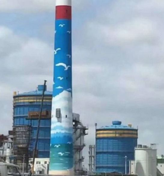 1 、原煙囪航標(biāo)全部翻新,涂刷成藍(lán)天白云圖案。