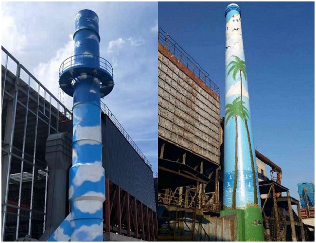 煙囪外墻美化主要用于火電廠,其形式主要分為單管和套管式。前者主要由鋼筋混凝土外層和耐酸磚或耐酸澆注料組成內(nèi)層結(jié)構(gòu)簡單,套管煙囪材質(zhì)基本相同。鋼筋混凝土、耐酸耐火磚或部分鋼制內(nèi)管的承重外觀與鋼板整體焊接,也應(yīng)充分考慮煙囪防腐材料的選擇。