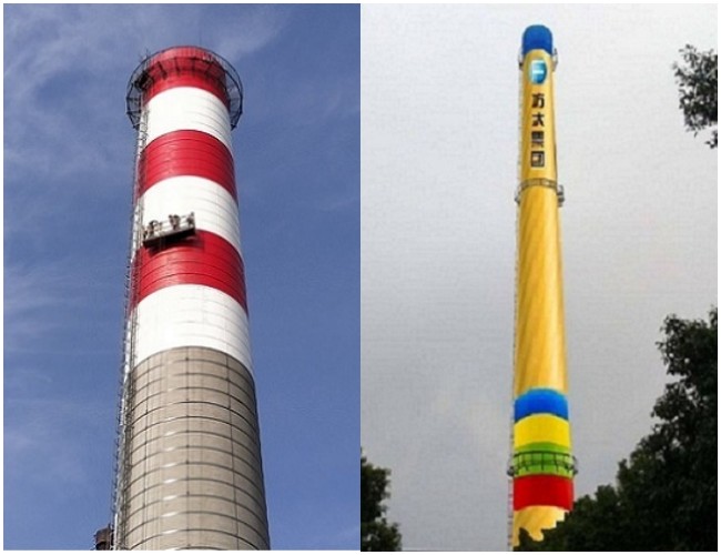 溫度也是影響煙囪美化工程的重要因素,必須特別注意。一般煙氣脫硫,溫度50℃左右;如果有GGH,氣溫將達到80℃左右。如果煙氣脫硫不正常,煙氣溫度將達到130℃。由于煙囪的工作溫度發(fā)生了變化,所用防腐涂料必須能承受不同溫度的反復(fù)作用,以免損傷防腐層,影響防腐效果。